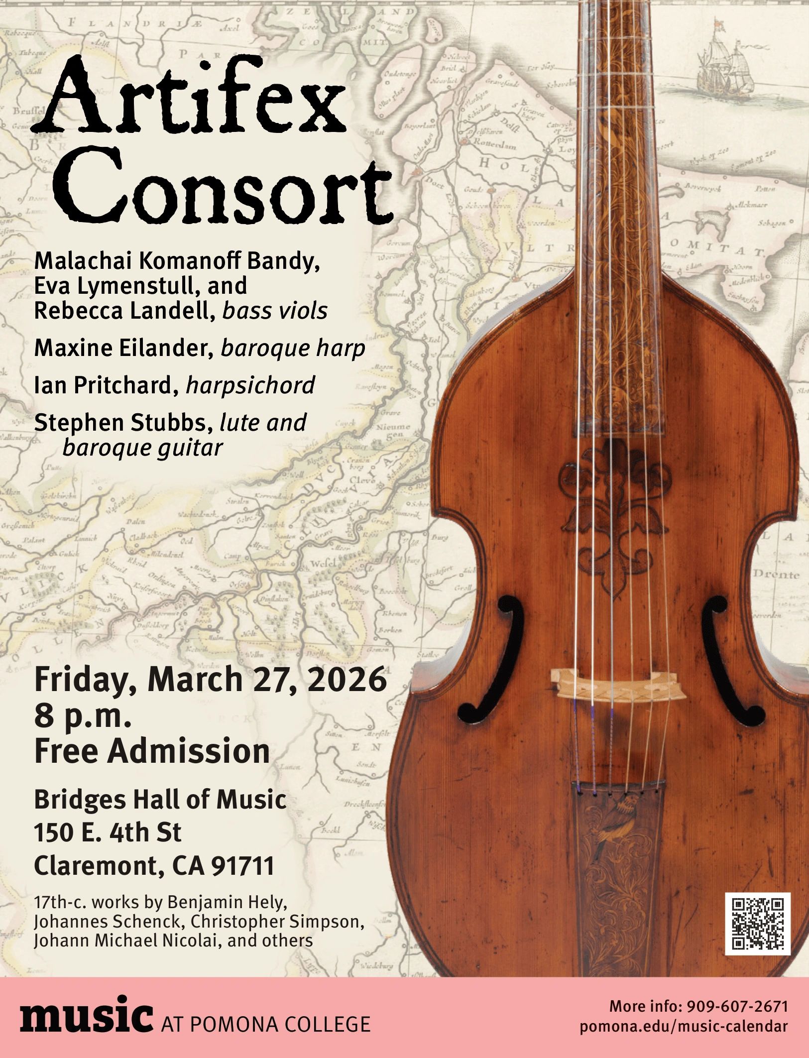 Featuring Malachai Komanoff Bandy, Eva Lymenstull, and Rebecca Landell, bass viols; Maxine Eilander, baroque harp; Ian Pritchard, harpsichord; Stephen Stubbs, lute and baroque guitar.